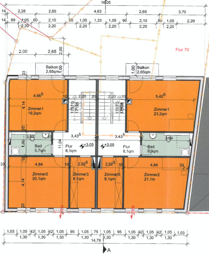 • Baugenehmigung für Zwei-Familien-Haus mit ca. 300 m² Wohnfläche vorhanden